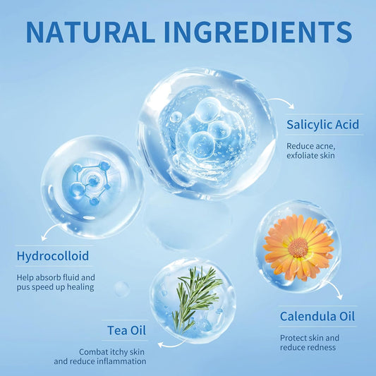 Pimple Patches for Face, 4 Size 300 Counts Acne Patches, Hydrocolloid Patches for Covering Zits and Blemishes, Spot Stickers with Salicylic Acid, Tea Tree Oil & Calendula Oil